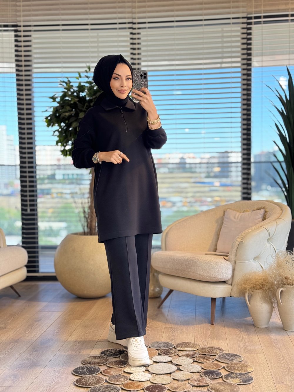 2564 Patı Fermuarlı Polo Yaka Takım Siyah