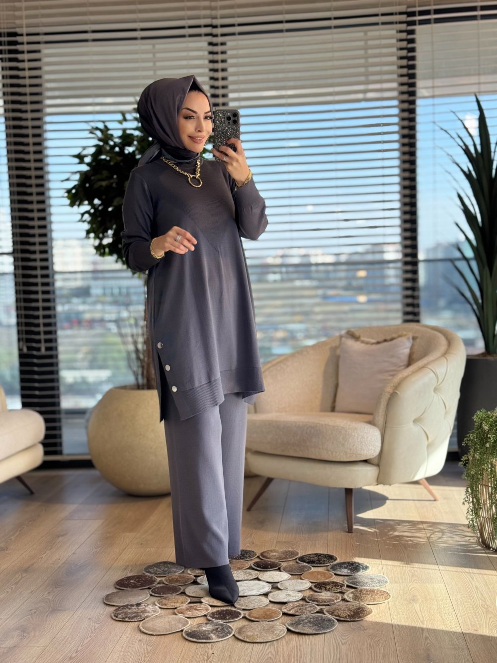 2583 Yanları Düğmeli Triko Takım Antrasit