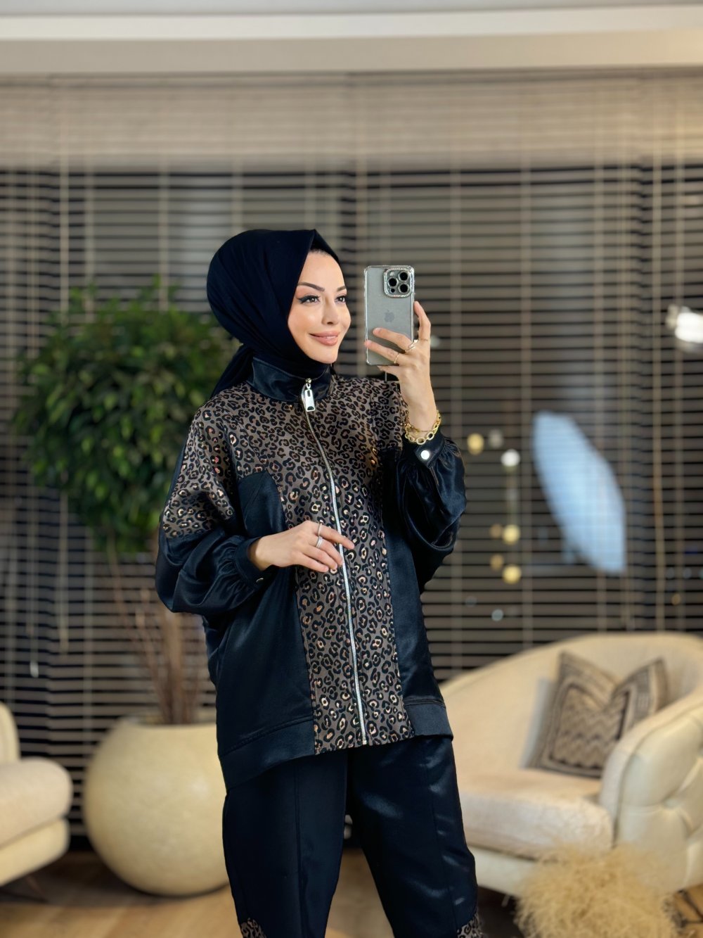 25K1021 Ön Leopar Parça Detaylı Takım Siyah