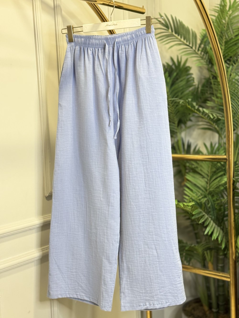 26087 Keten Bol Paça Pantolon Bebe Mavi