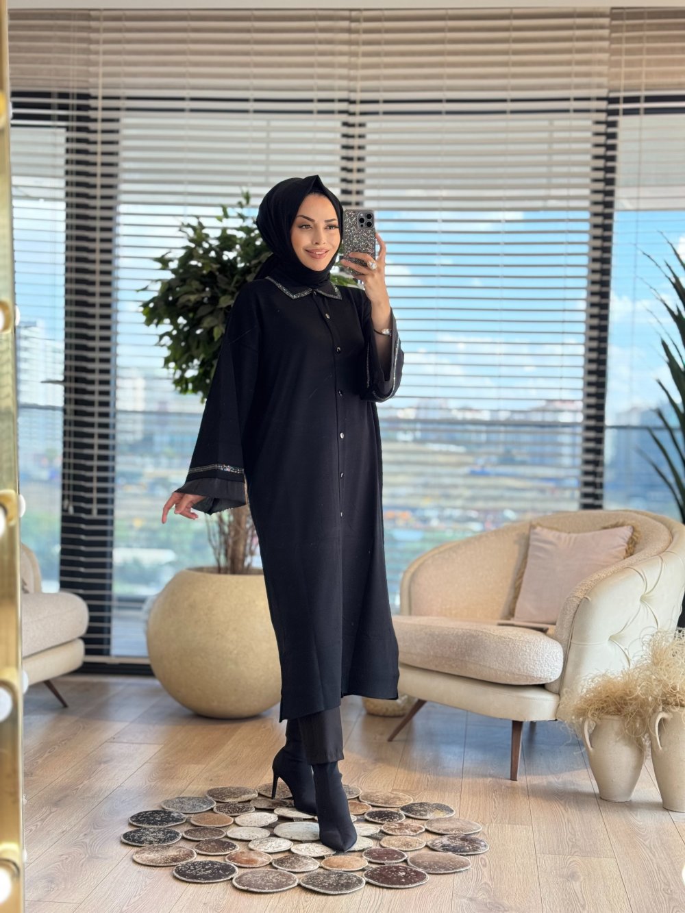 262 Yaka Manşet Taşlı Ferace Hırka Siyah
