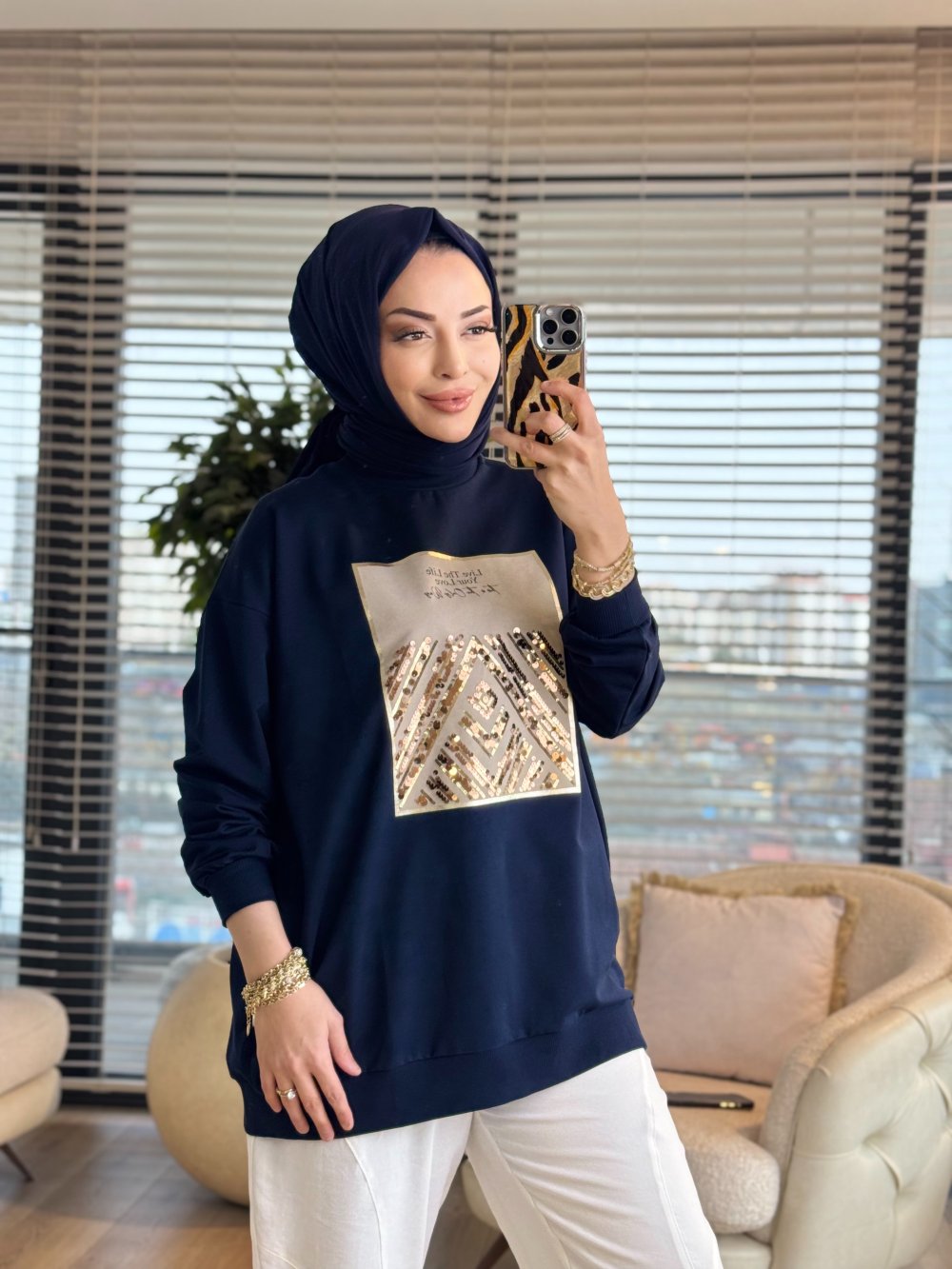 2695 Baskısı Pul Detaylı Sweatshırt Lacivert