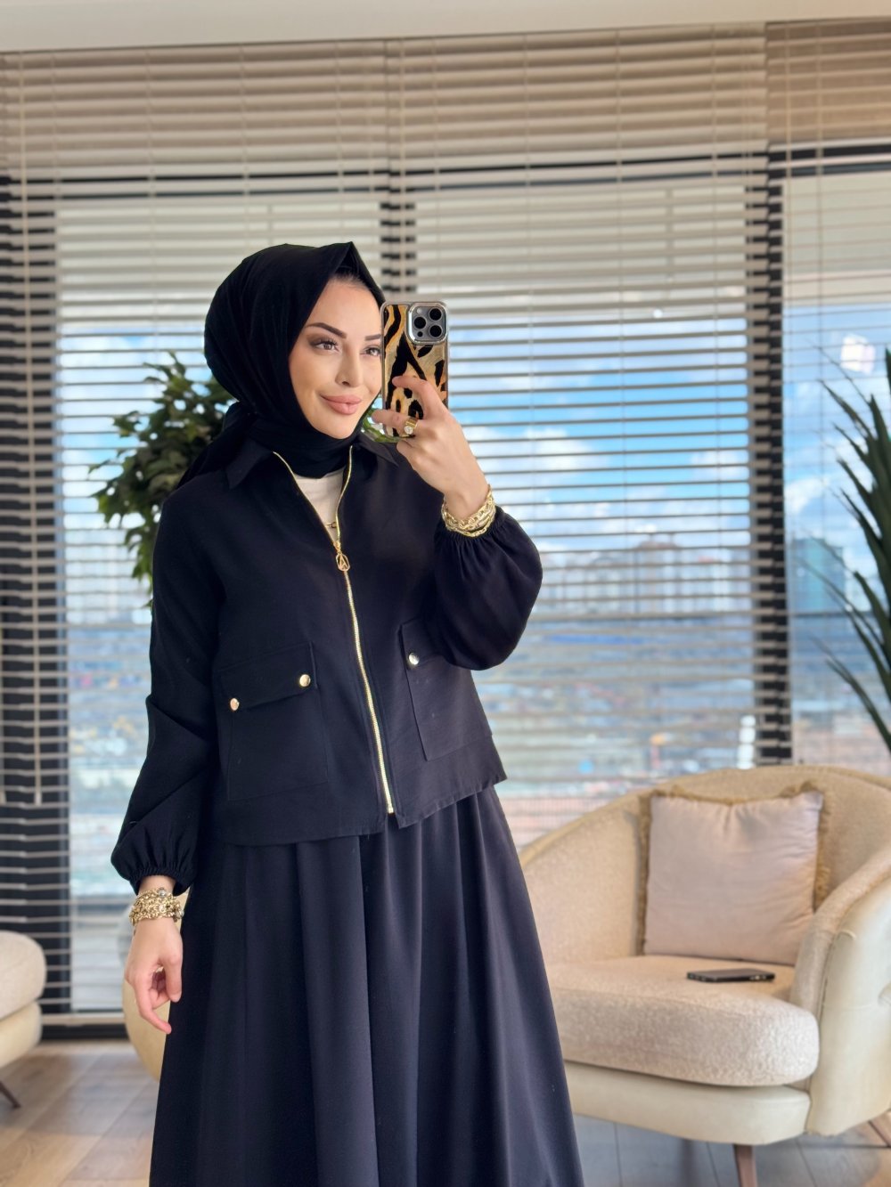 26YT621 Ön Cep Ve Fermuarlı Etekli Takım Siyah