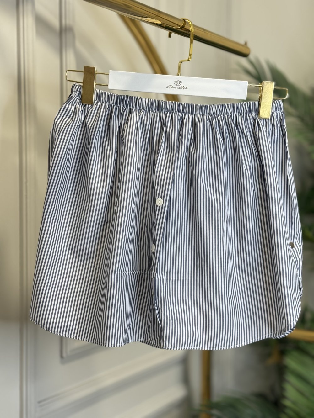 27013-1 Çizgili Önü Düğmeli Etek İçlik Mavi