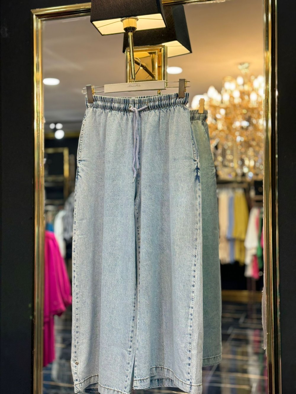 2738 Bel Lastikli Bol Paça Kot Pantolon Mavi