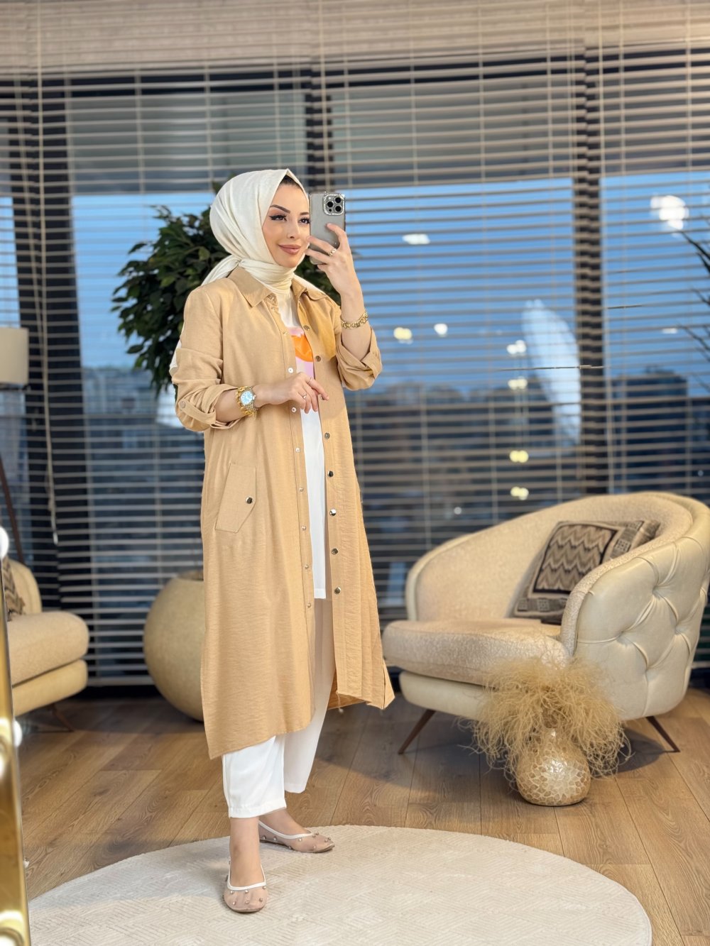 2753 Üst Keten Kap İç Bluz 2li Takım Latte