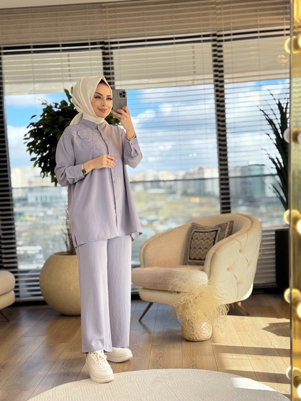 2802 Sarmaşık Nakış Detaylı Takım Gri