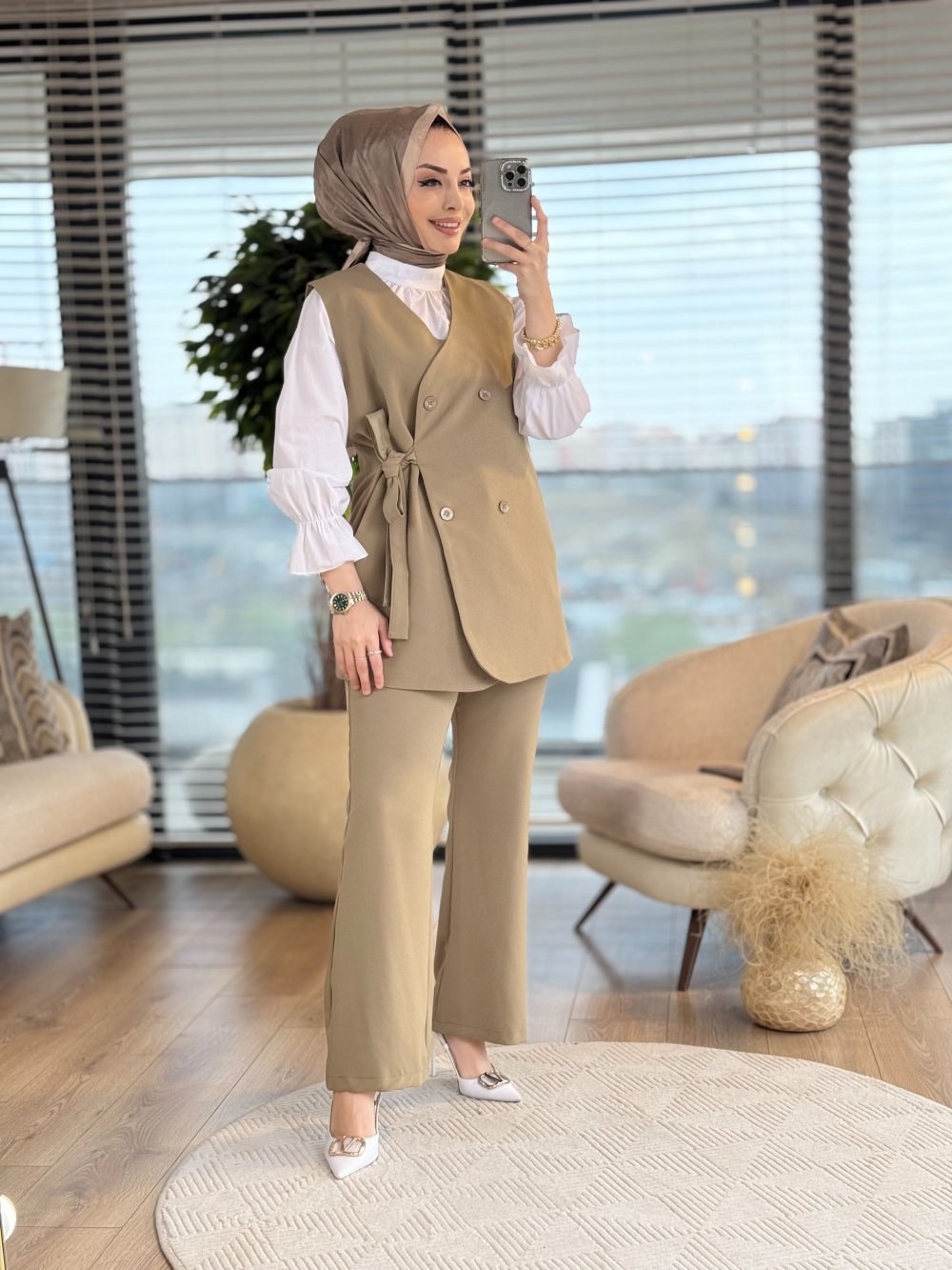 2841 Bağcık Detaylı Yelekli Takım Haki