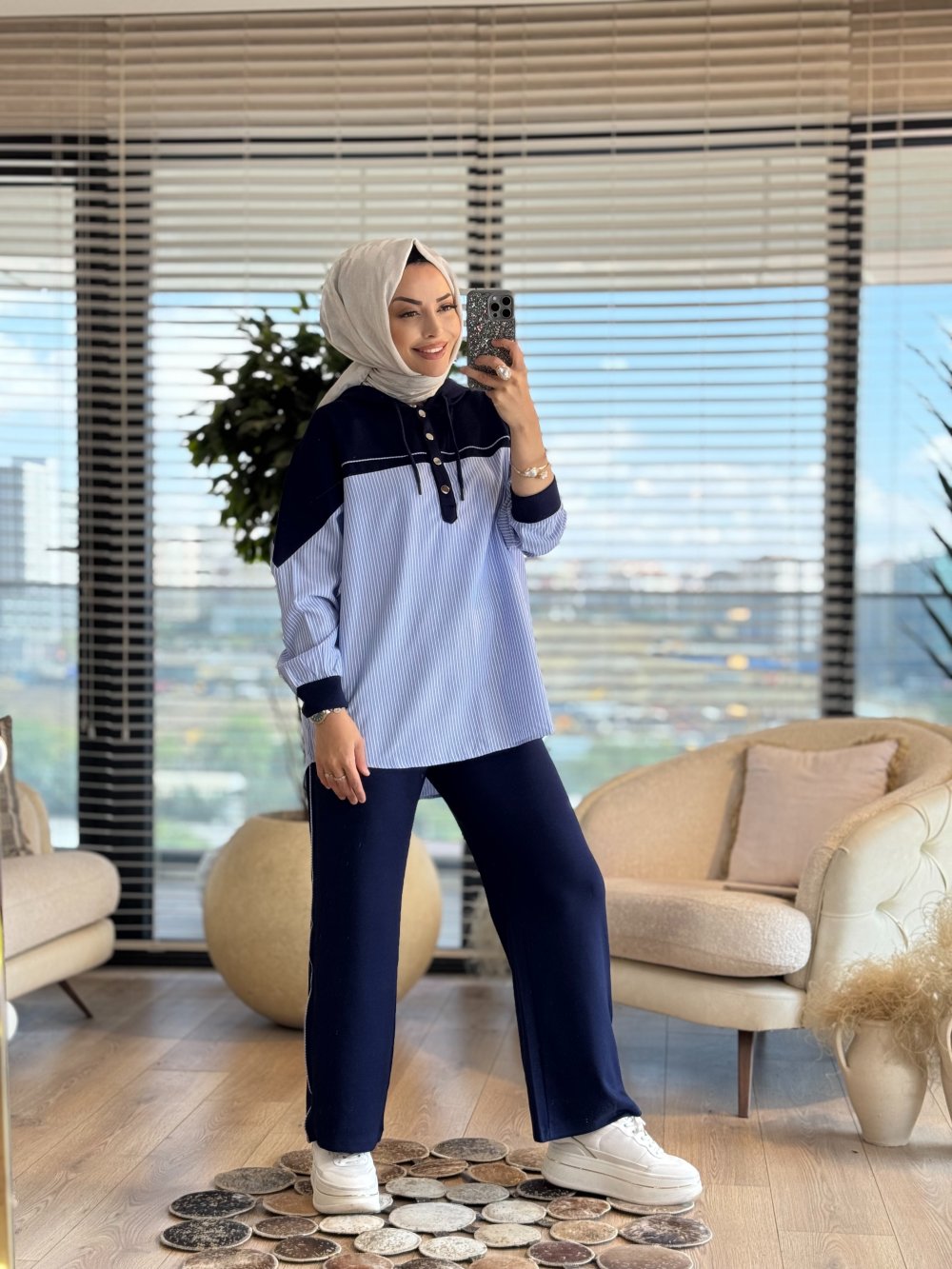 2842 Gömlek Garnili Çıtçıtlı Takım Lacivert