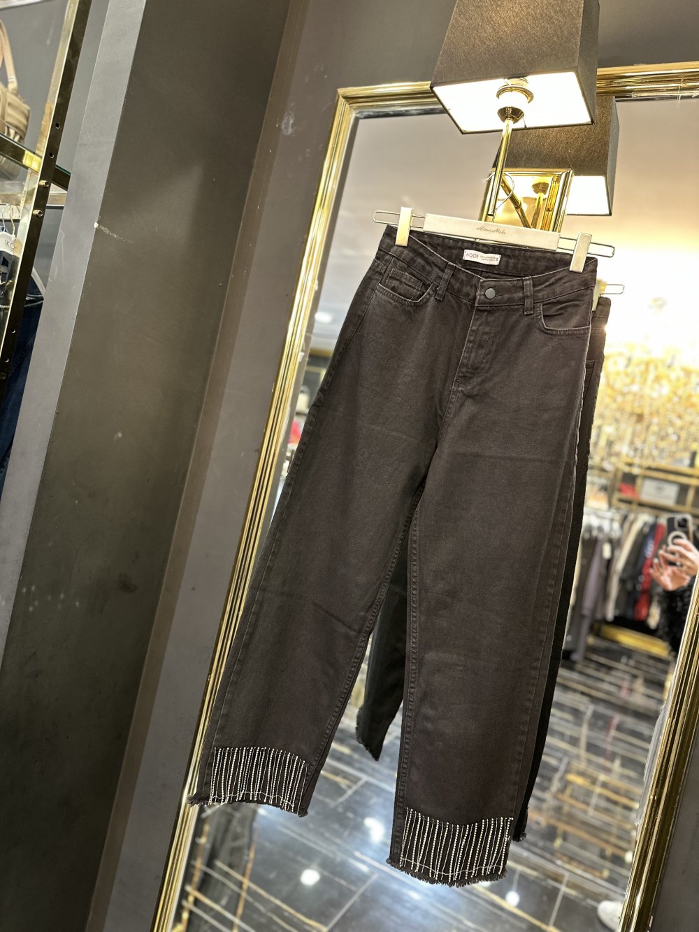 3001 Paça Püskül Taşlı Kot Pantolon Siyah
