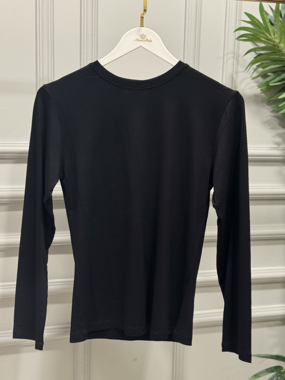 3077 Sıfır Yaka Uzun Kol Bluz Siyah