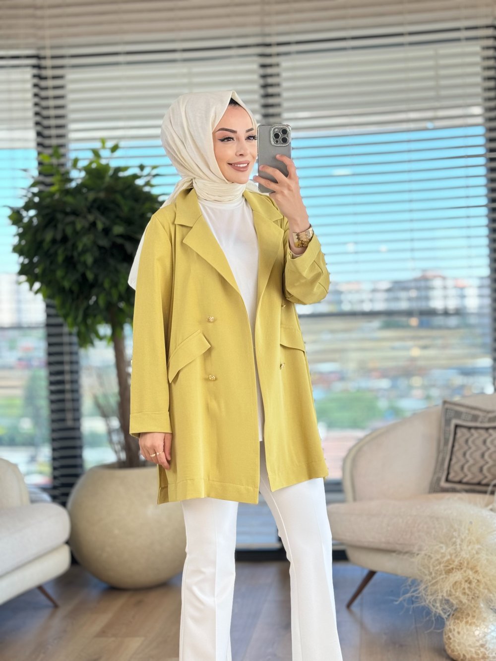3079 Linda Düğmeli Ceket Yağ Yeşili