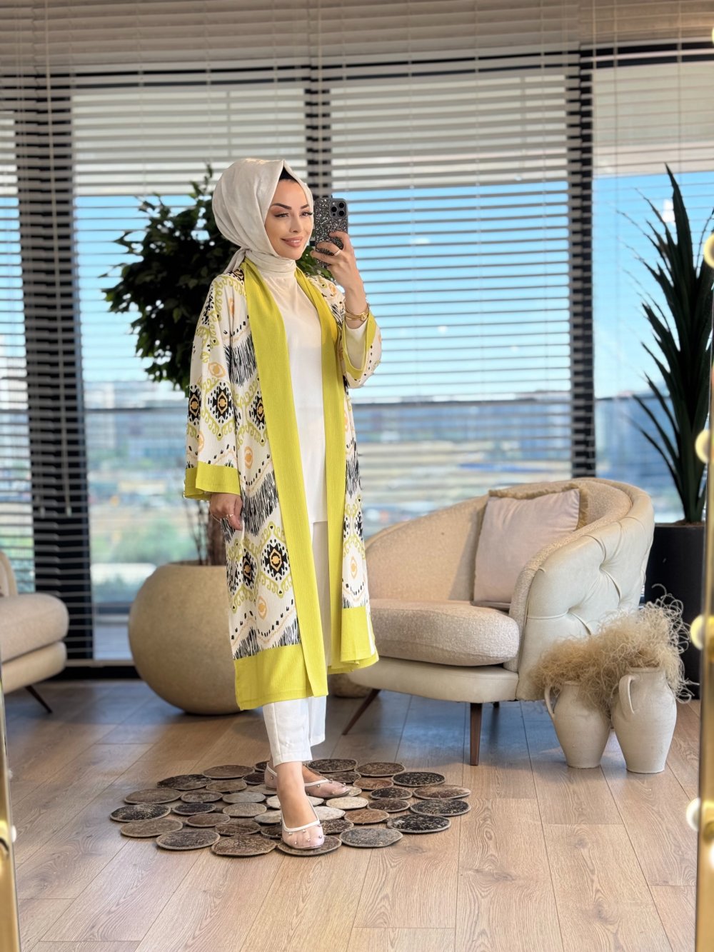 31589 Etnik Desen Baskılı Hırka Yağ Yeşili