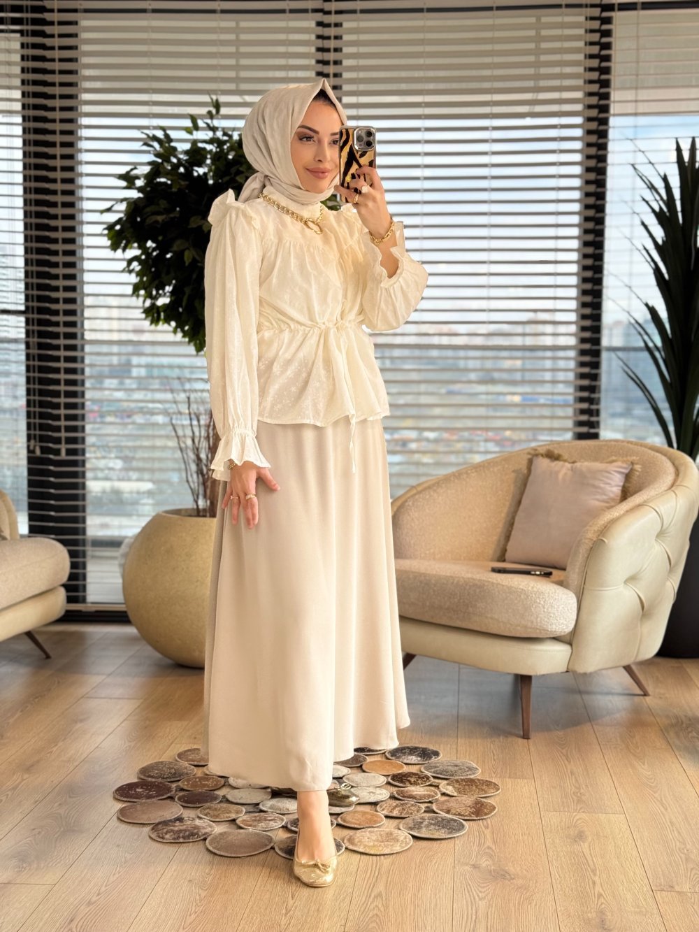 3196 Fırfır Detaylı Brode Gömlek Ekru