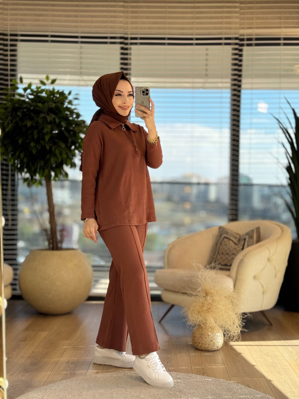 32005 Boyuna Fitilli Patı Fermuarlı Takım Kahve