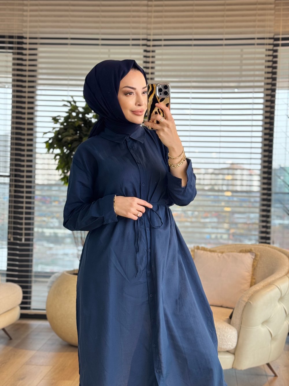 3204 Yırtmaçlı Midi Boy Gömlek Lacivert