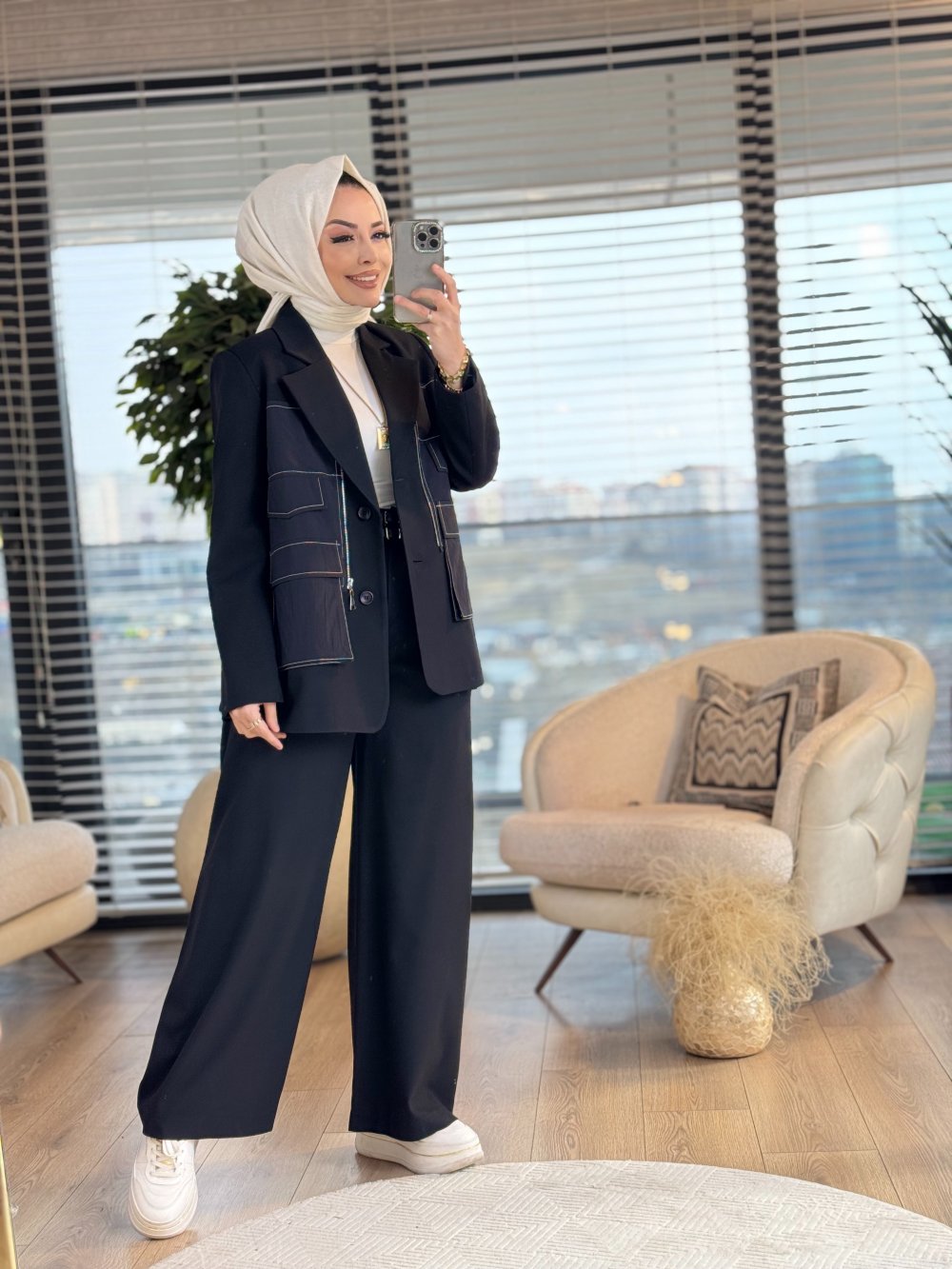 32151 Ön Dikiş Ve Cepli Ceket Siyah