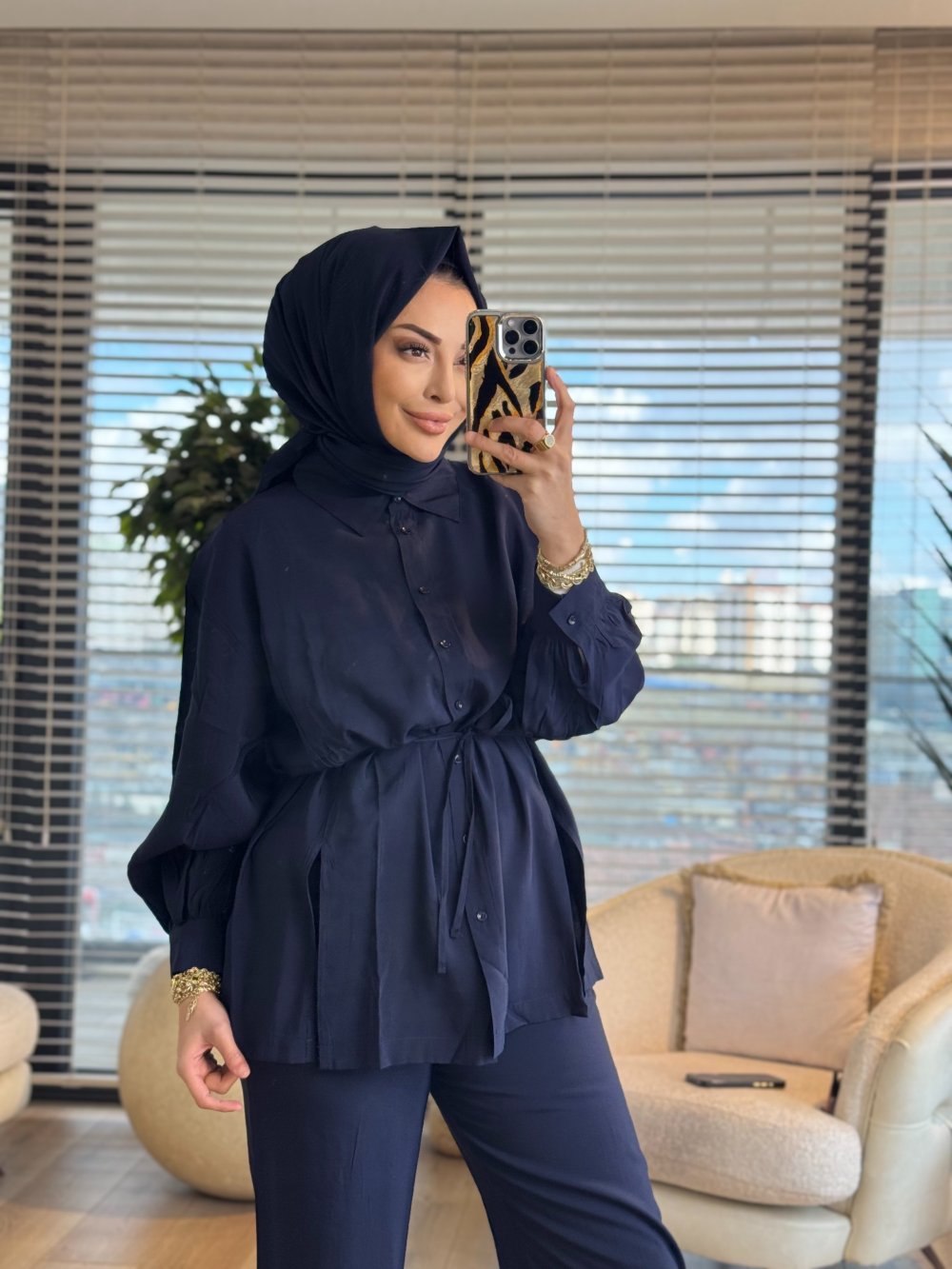 3230 Yırtmaç Detaylı Takım Lacivert