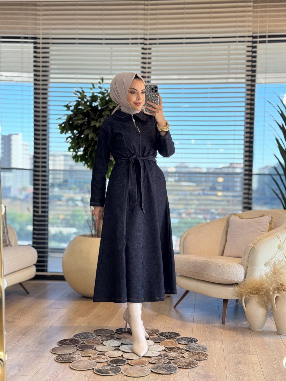 32396 Kot Patı Fermuarlı Dikişli Elbise Lacivert