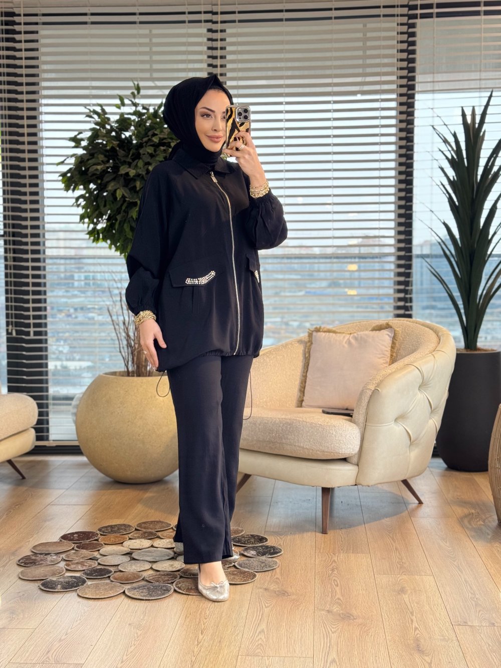 3256 Cep Kapağı Taş İşlemeli Takım Siyah