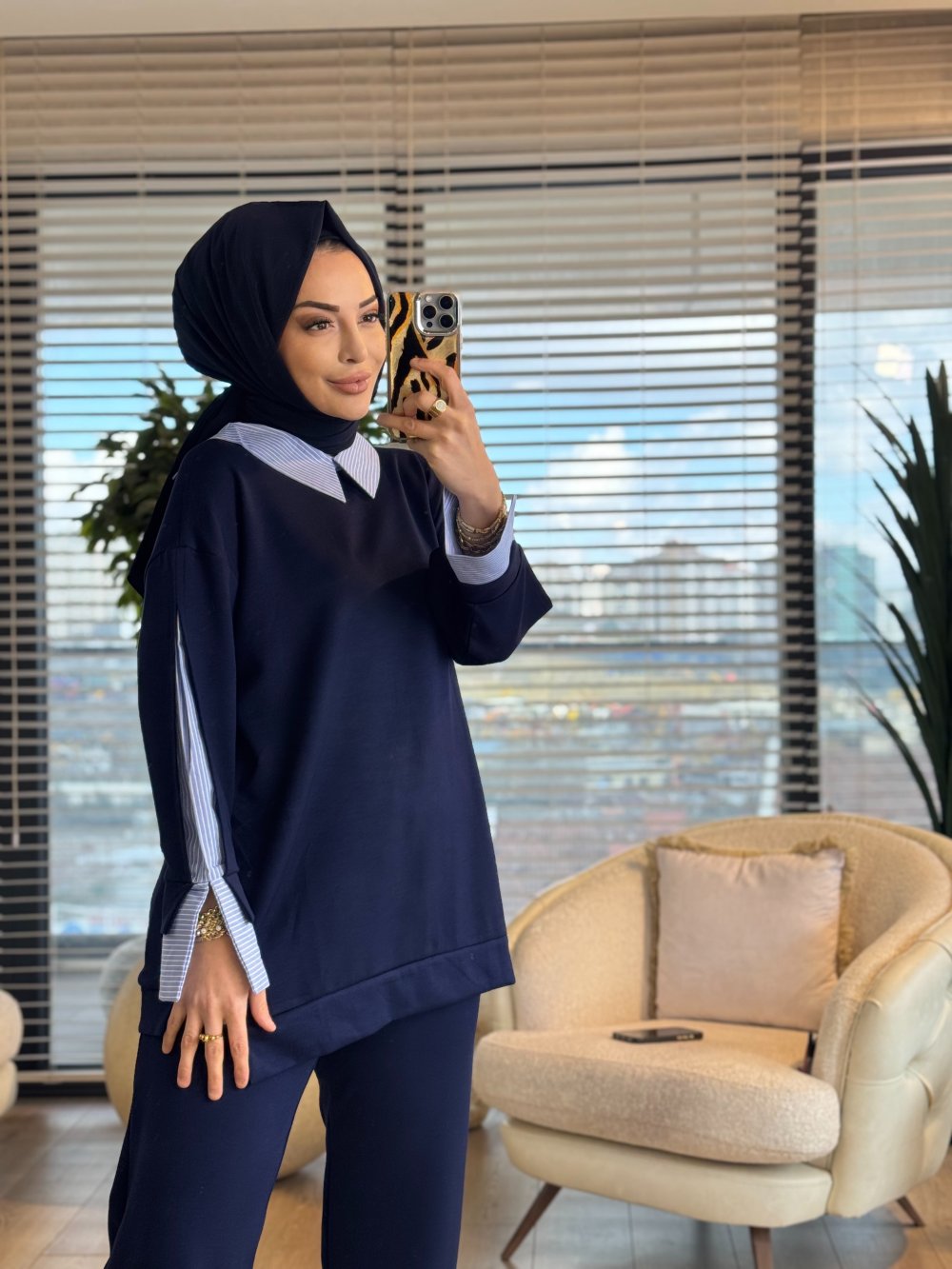 3314 Gömlek Yaka Garnili Takım Lacivert