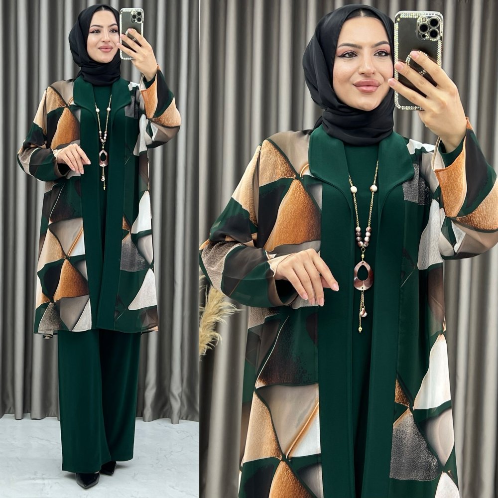 3381 Şermin 3lü Takım Zümrüt