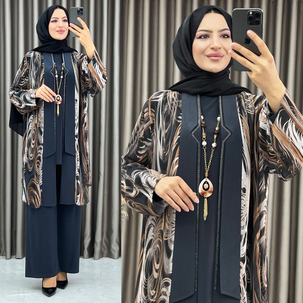 3394 Nergiz 3 lü takım Gri