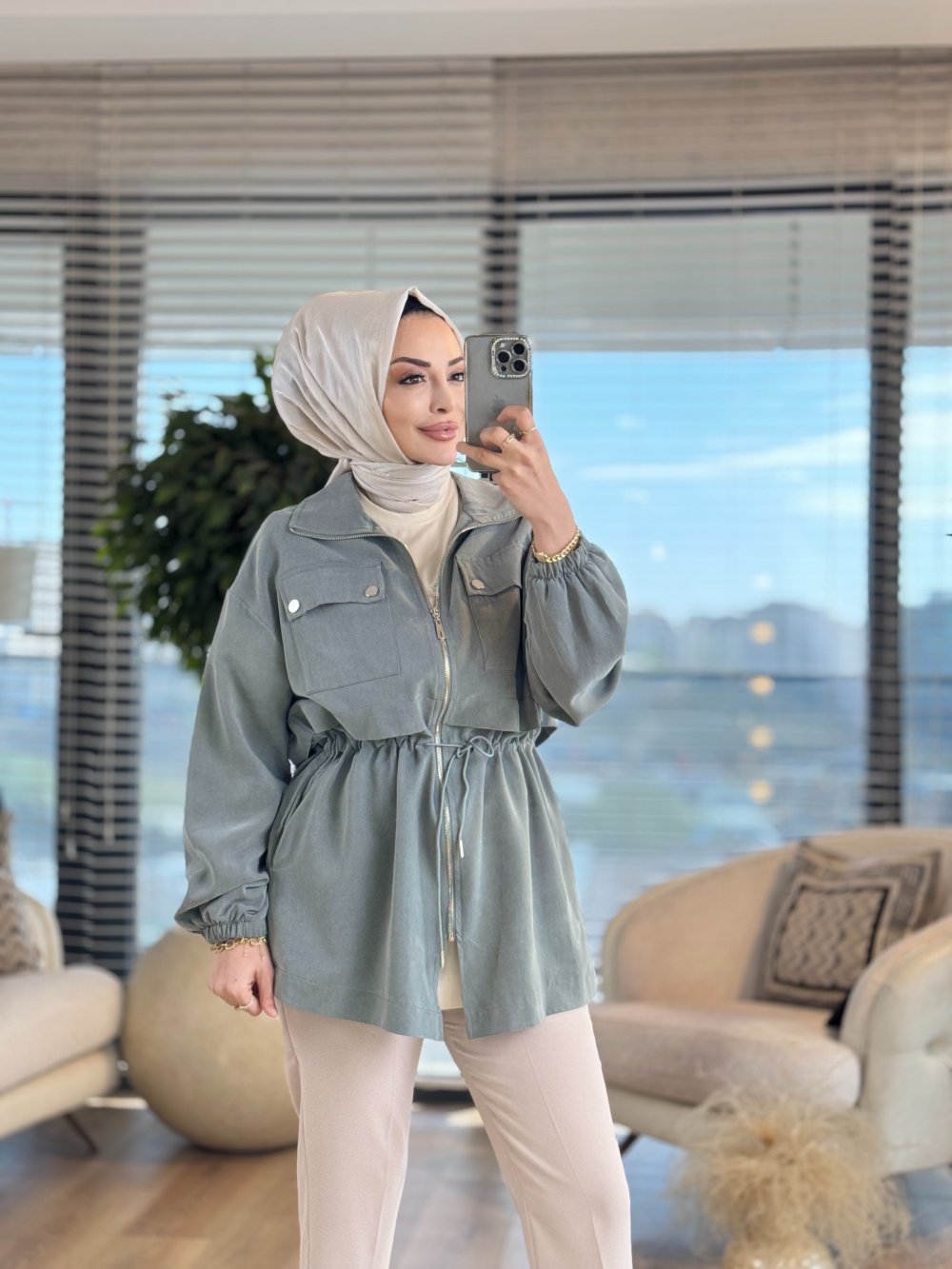 34082 Fermuarlı Dik Yaka Kap Siyah