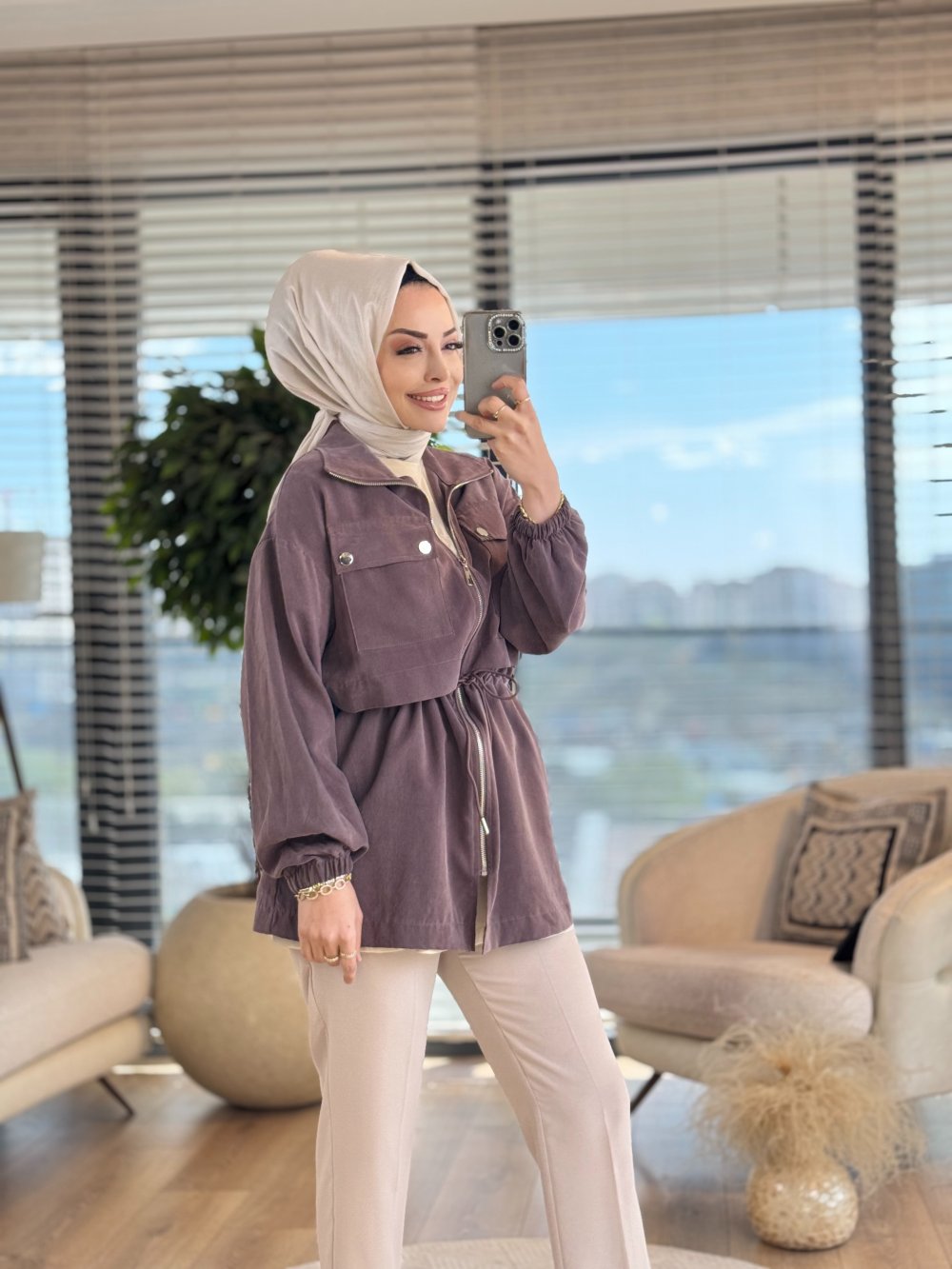 34082 Fermuarlı Dik Yaka Kap Kahve