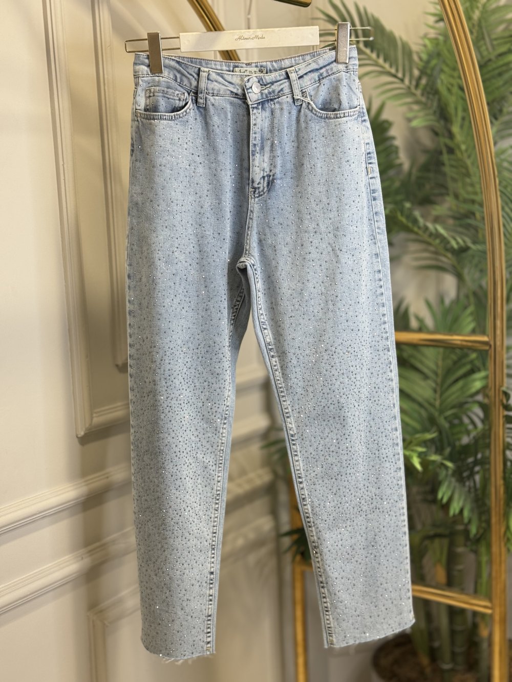34863 Üst Serpme Taş Baskılı Kot Pantolon Mavi