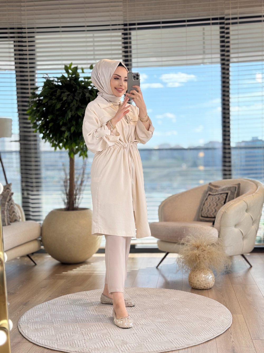 34978 Beli Tünelli Fermuarlı Çıtçıtlı Kap Açık Bej