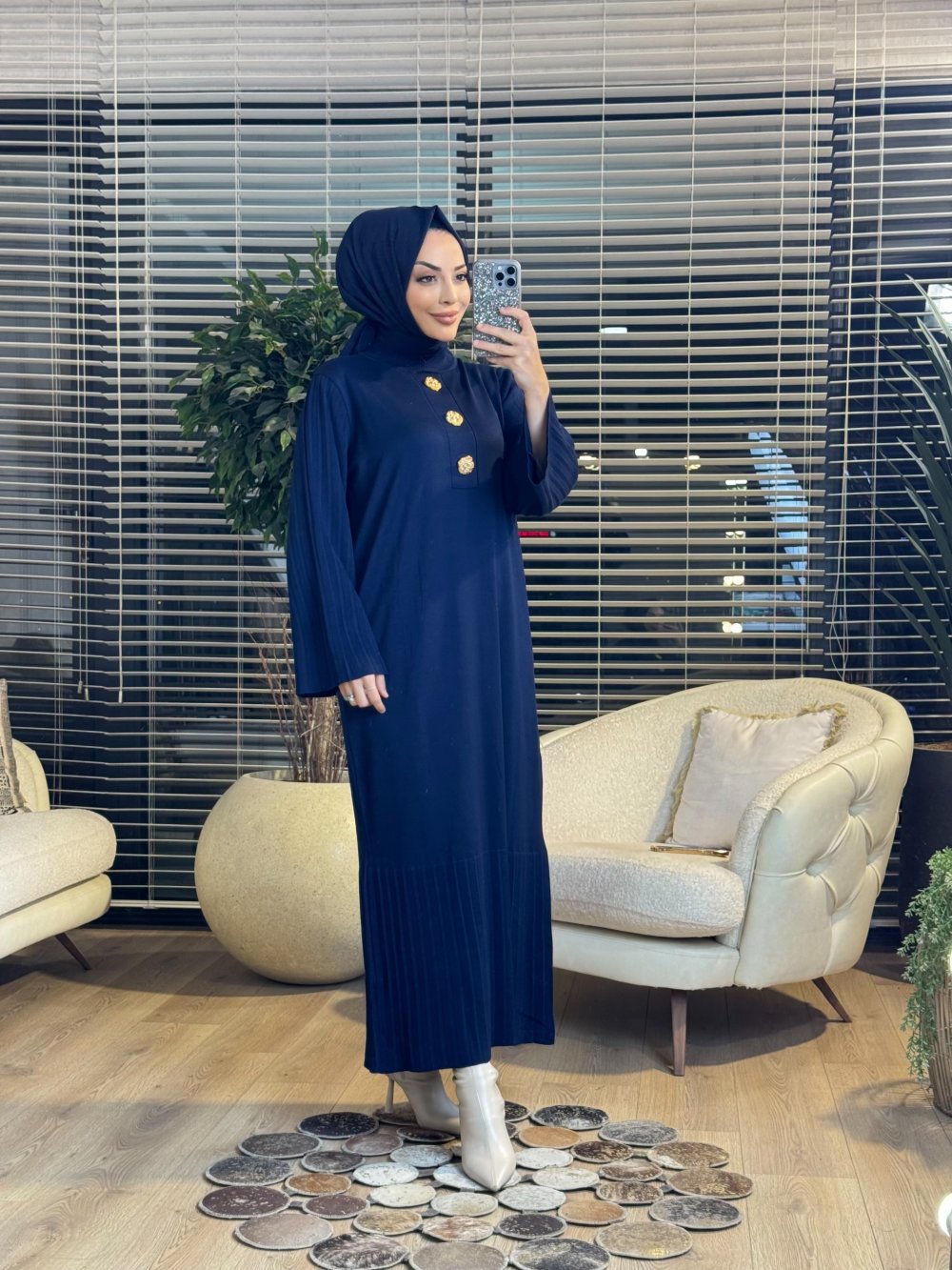 3507 Metal 3 Broşlu Triko Elbise Lacivert