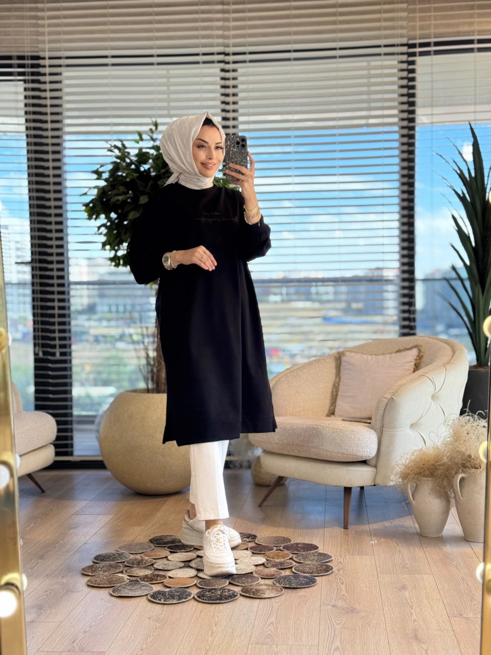 35331 Tonaton Baskılı Uzun Tunik Siyah