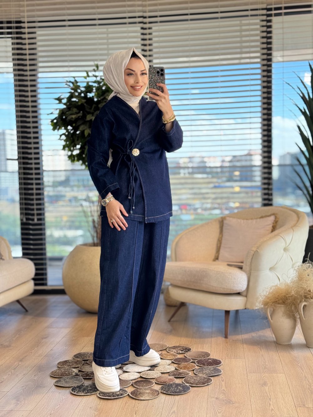 35612 Kruvaze Detaylı Kot Takım Lacivert