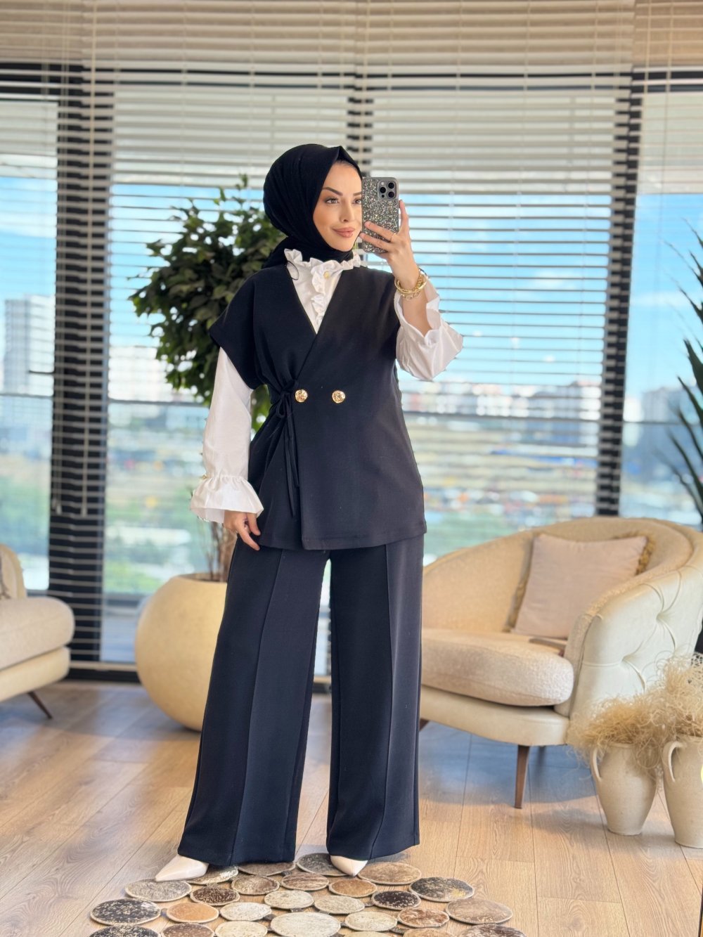 35717 Kruvaze Yelekli Pantolonlu Takım Siyah