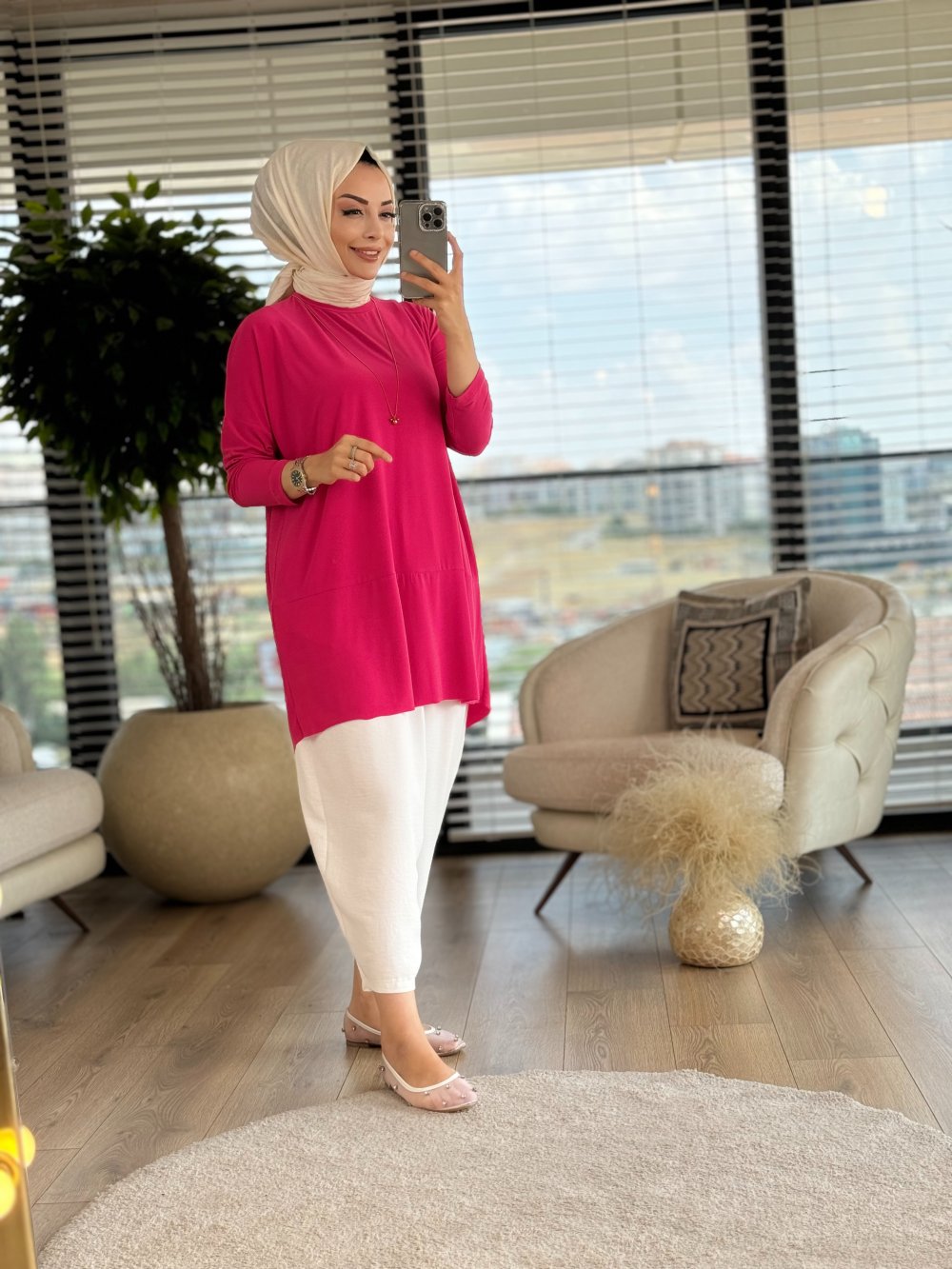 4088 Zerafet Makas Tunik Fuşya