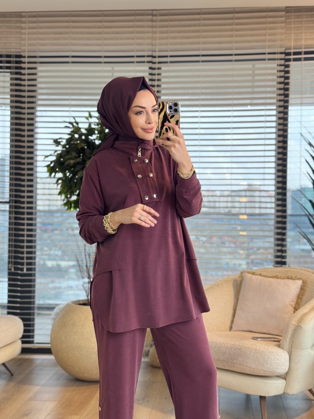 4417 Oysho Dik Yaka Patı İki Düğmeli Takım Bordo