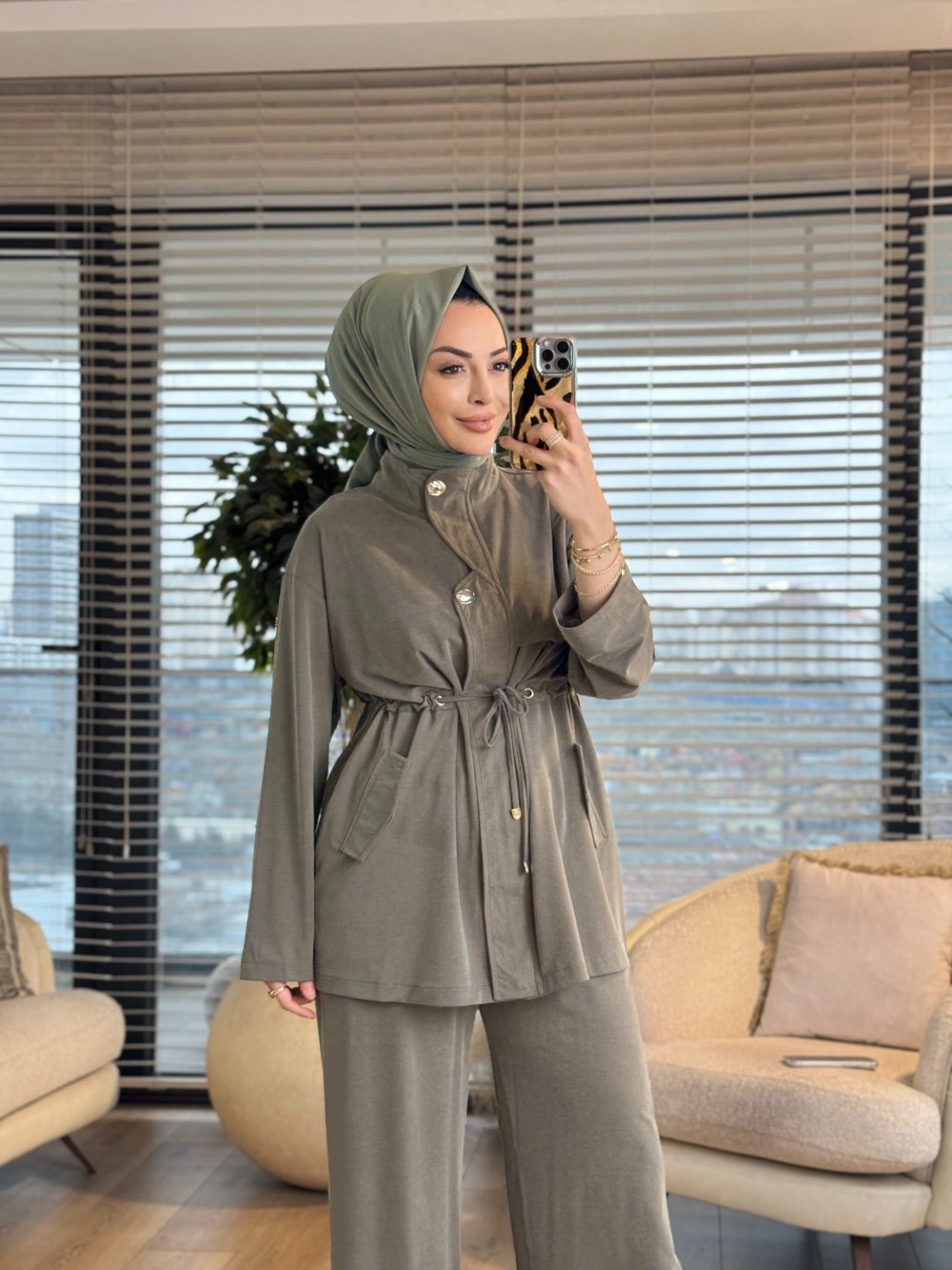 4447 Oysho Fermuar Üstü Kapaklı Takım Haki