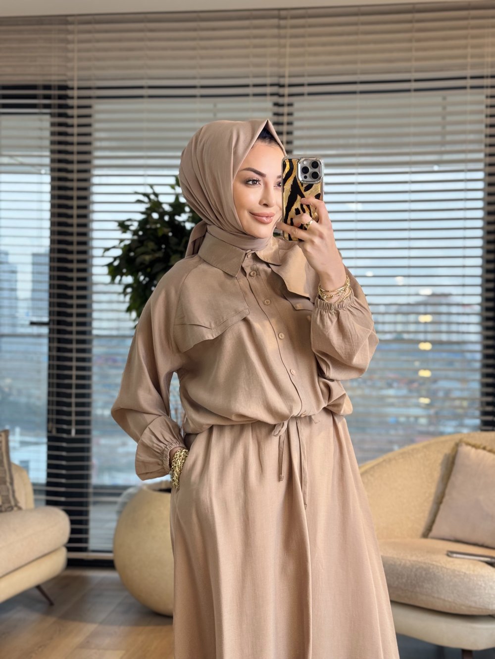 4458 Roba Cep Kapağı Parça Detaylı Takım Bej