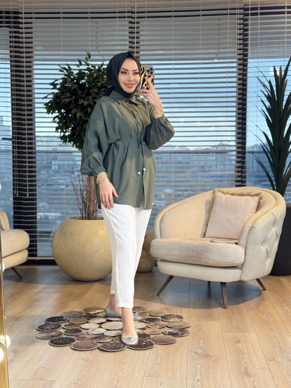 4464 Robası Dikişli Klasik Gömlek Haki