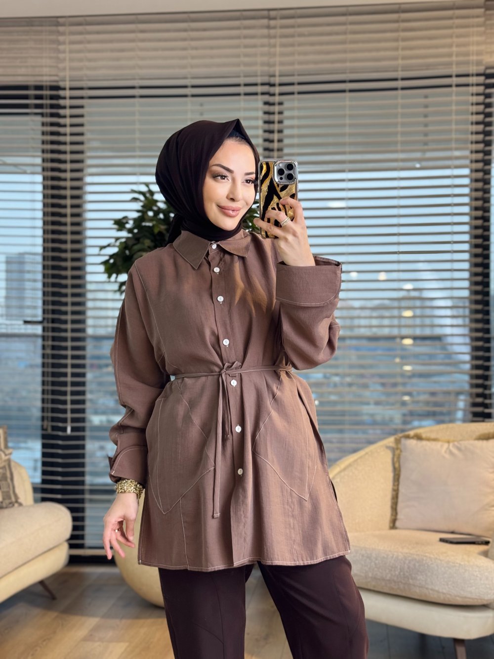 4468 Cepli Kolu Katlamalı Gömlek Vizon
