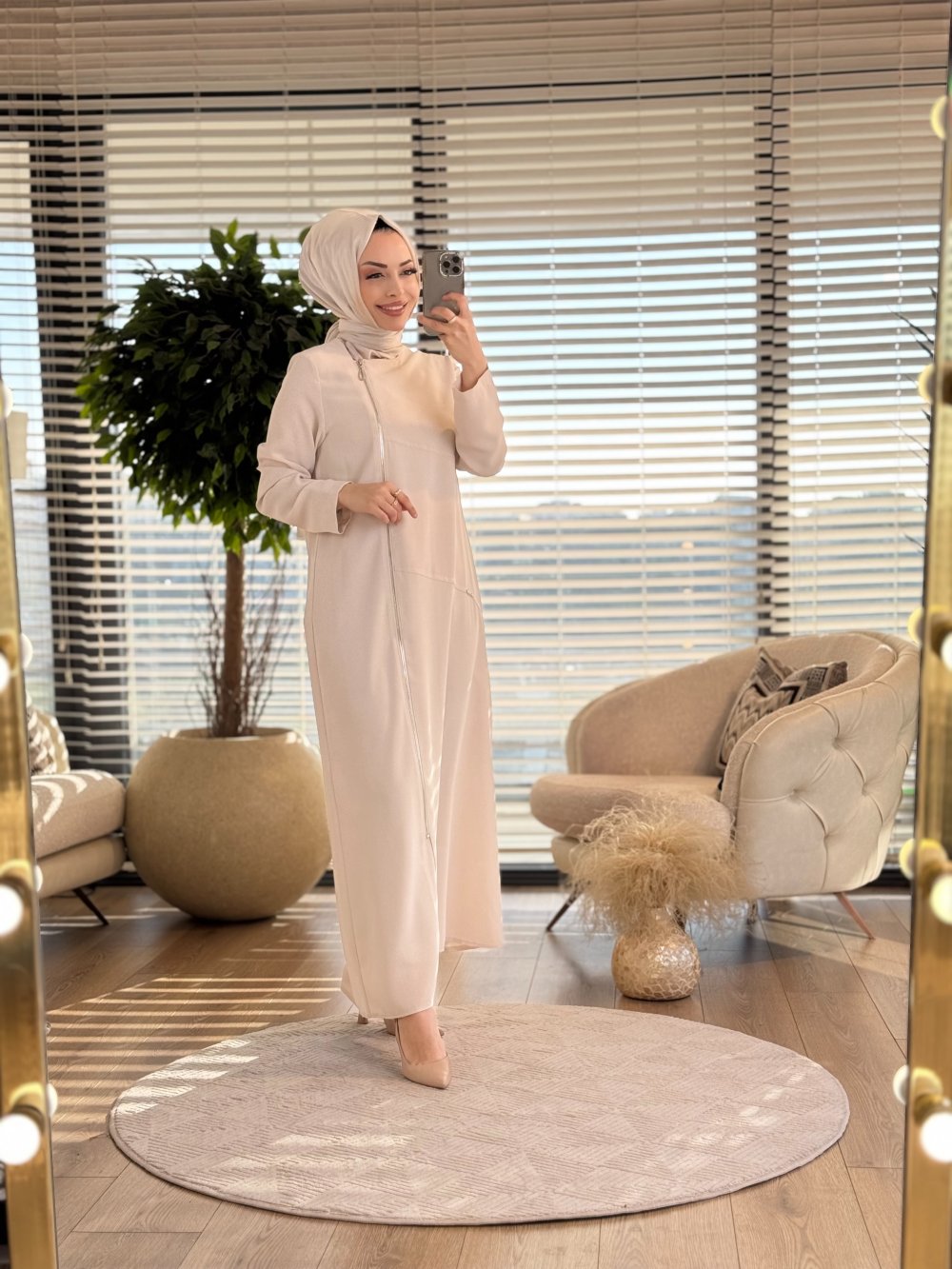 4561 Yandan Fermuarlı Pardesü Taş