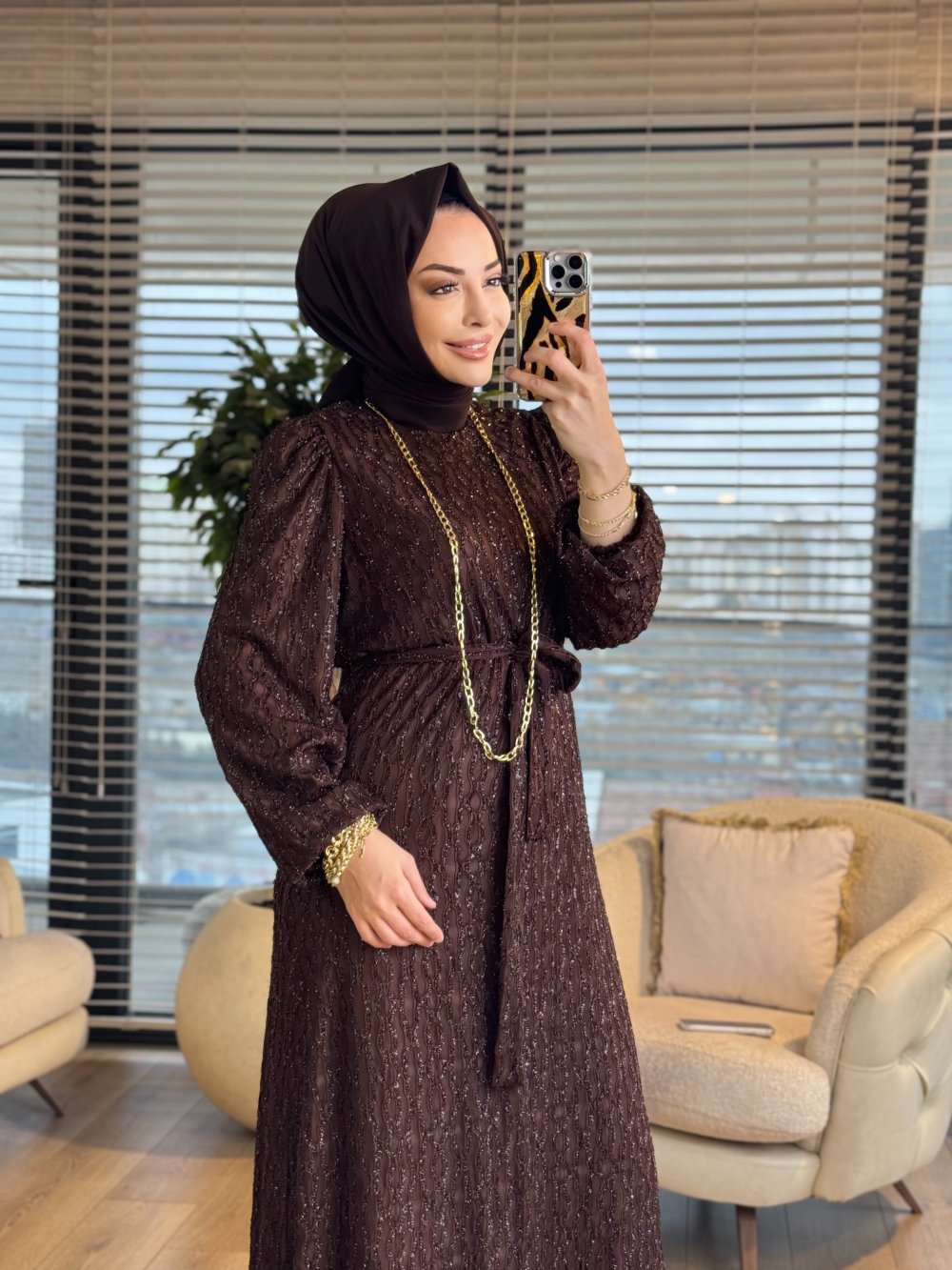 5062 Lokma Elbise Kahve