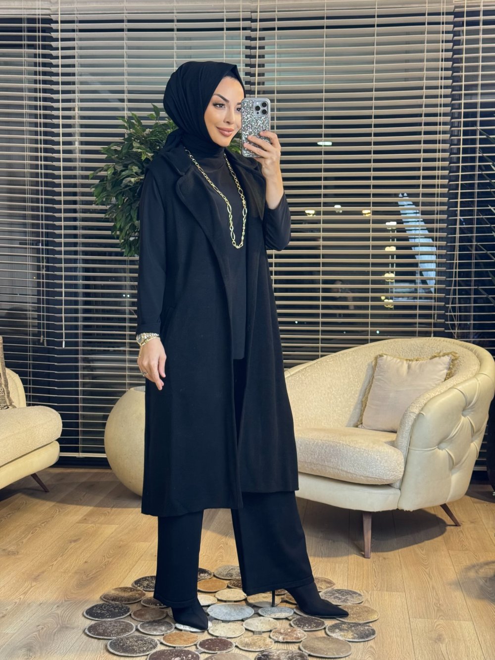 5266 Yakalı Triko Yelek Siyah