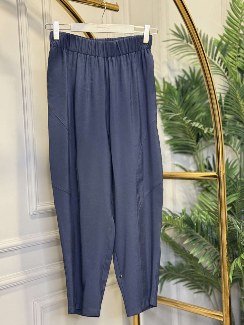 5596 Keten Dikiş Detaylı Parçalı Pantolon Lacivert