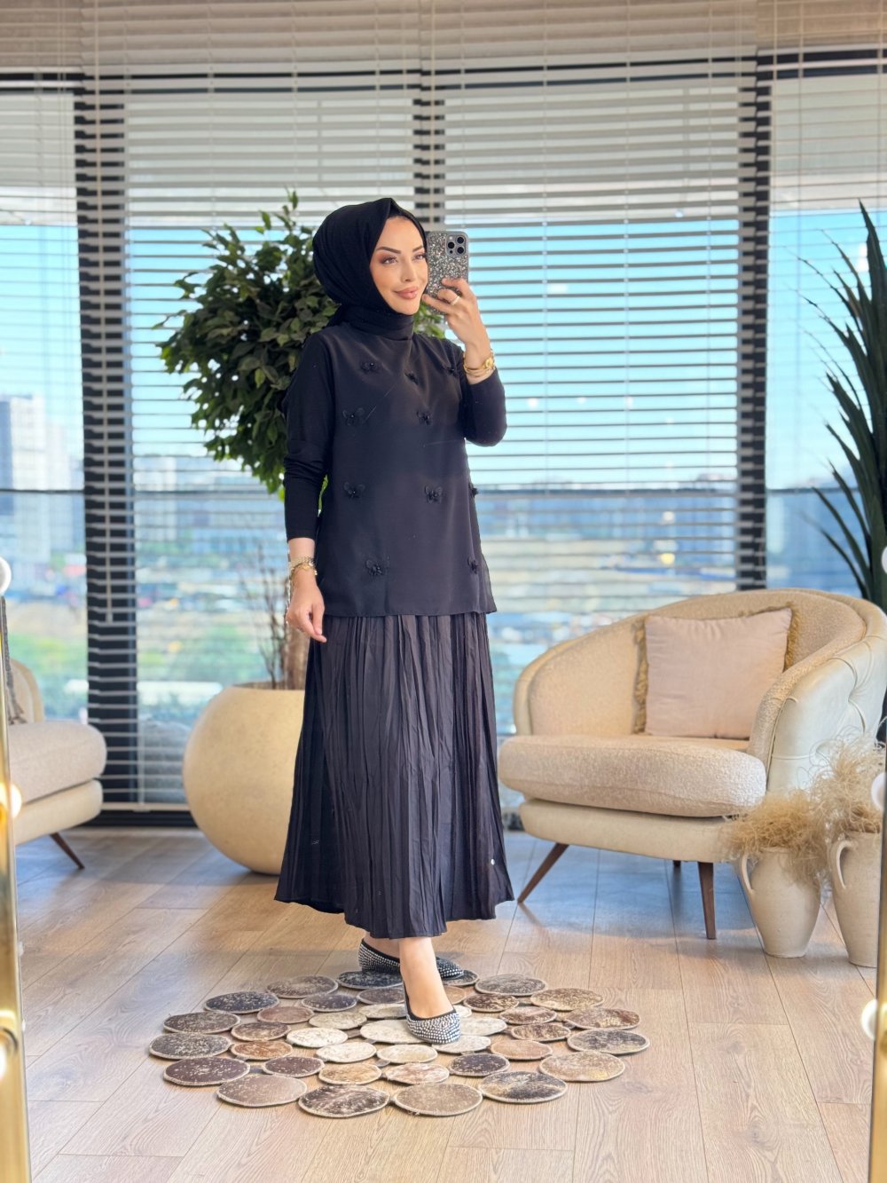 569 Ön Şifon Üstü Serpme Çiçekli Bluz Siyah