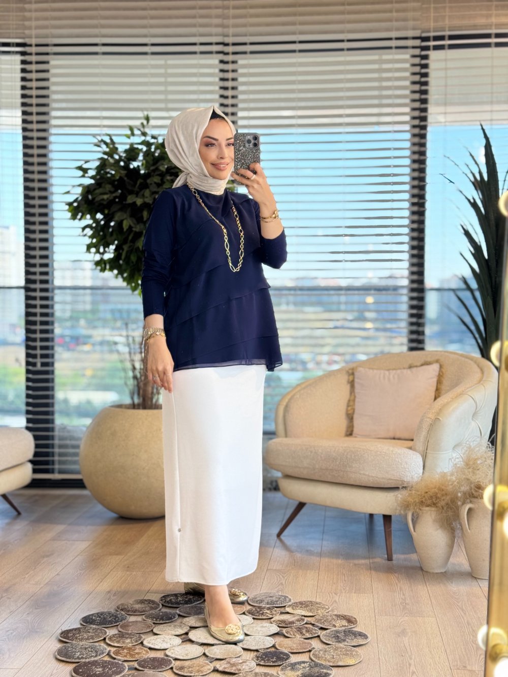 573 Önü Çapraz Şifon Katkatlı Bluz Lacivert