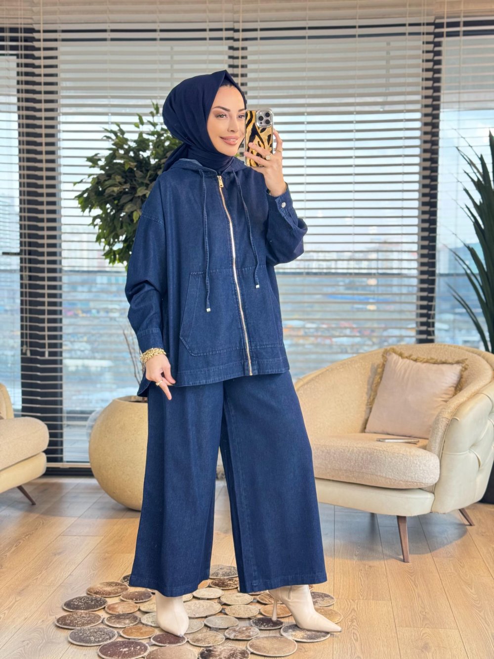 6036 Kapşonlu Fermuarlı Tencel Takım Lacivert
