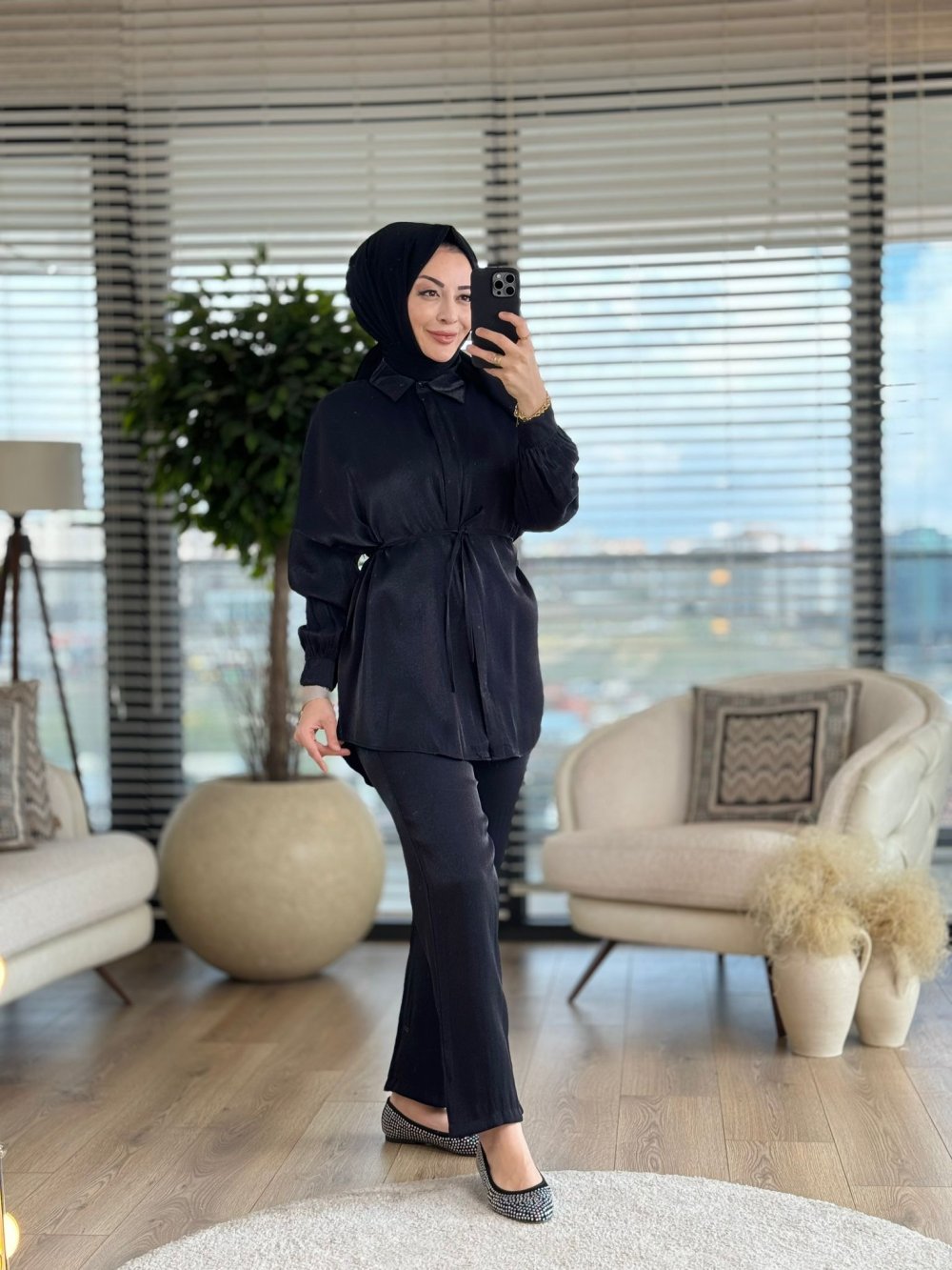 6104 Parlak Kumaş Takım Siyah