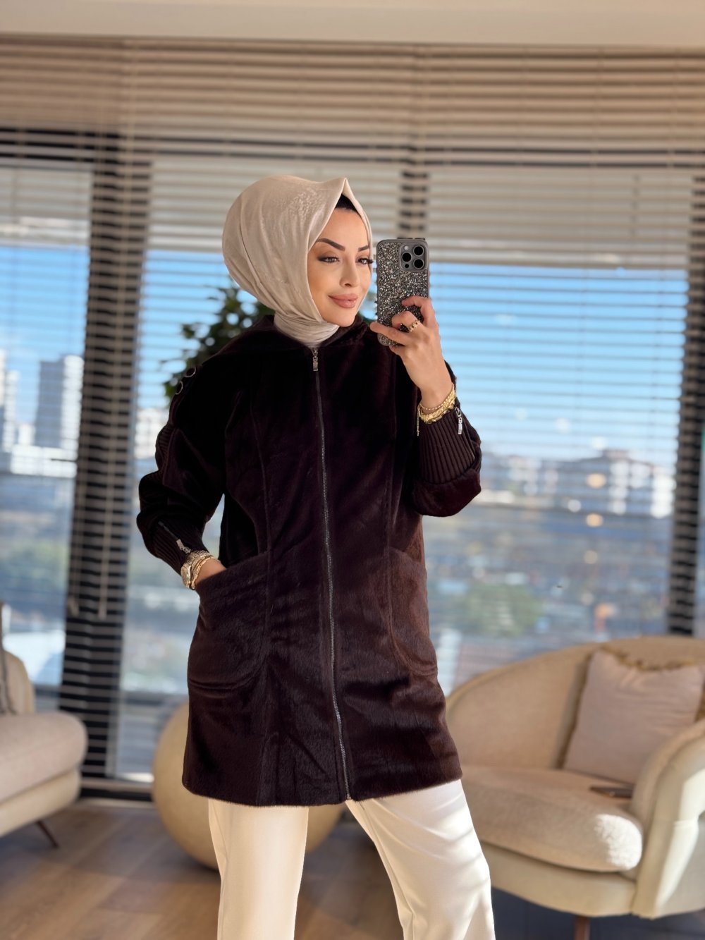 70027 Angora Omuzları Apoletli Kaban Kahve